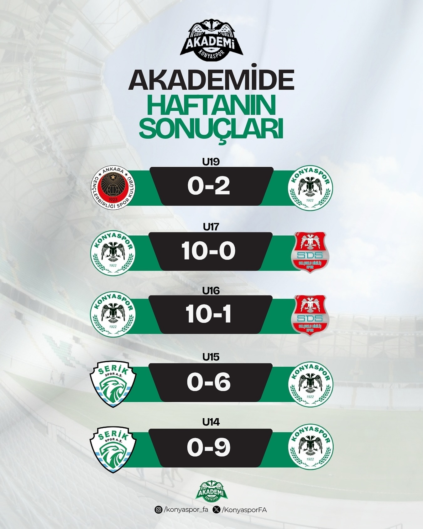 Konyaspor Akademi oyuncularımız Ata Yanık ve Efe Seçil, U17 Milli Takımımızın 11-17 Kasım tarihleri arasında Sırbistan’da oynayacağı 2025/26 UEFA Avrupa U17 Şampiyonası Eleme Turu maçları aday kadrosuna davet edildi. Oyuncularımıza,